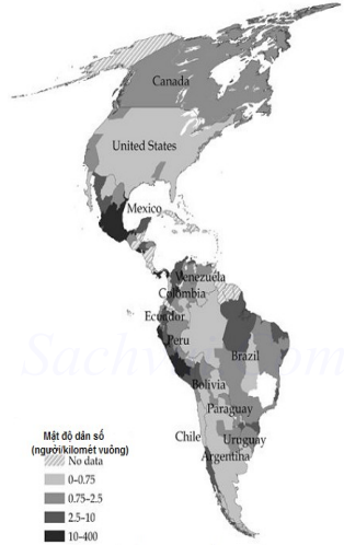Bản đồ 2: Mật độ dân số ở châu Mỹ năm 1500
