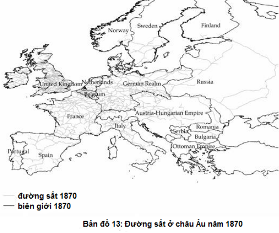 Bản đồ 13: Đường sắt ở châu Âu năm 1870 (p. 295)