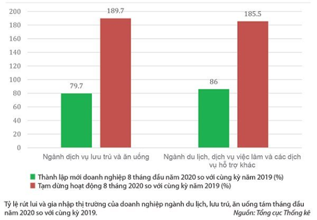 Song không phải doanh nghiệp nào cũng may mắn được cứu hoặc có khả năng sinh tồn. Số liệu mới nhất của Tổng cục Thống kê cho thấy, tám tháng đầu năm 2020 tỷ lệ doanh nghiệp các ngành khách sạn, nhà hàng, du lịch phải tạm dừng hoạt động tăng tới gần 1,9 lần so với cùng kỳ năm ngoái. Trong khi đó, tỷ lệ “sinh mới” của các doanh nghiệp các nhóm ngành này chỉ bằng 80%.