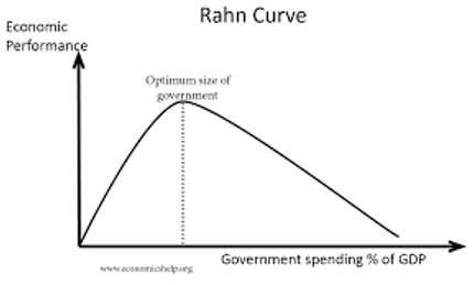 Một lập luận khác ủng hộ kiềm chế tài khóa là Đường cong Rahn - đặt theo tên nhà kinh tế học người Mỹ Richard Rahn (1942–). Đường cong này cho thấy uan hệ giữa tăng trưởng kinh tế và chi tiêu chính phủ cũng là một đường cong gù lưng. Cũng có thể cần một số khoản chi tiêu công nhằm cung cấp cơ sở hạ tầng và các thiết chế cơ bản (ví dụ, quốc phòng và tư pháp) giúp cho đời sống kinh tế trở thành khả thi. Nhưng khi chính phủ chi tiêu tỷ lệ quá lớn thu nhập quốc dân, thì tăng trưởng kinh tế sẽ chậm lại. Những người theo phái trọng cung cho rằng còn một lý do quan trọng nữa: Họ phát hiện được rằng thuế suất cao hơn sẽ làm giảm đáng kể đổi mới sáng tạo – tăng 1% thuế thu nhập của giới thượng lưu và thuế suất doanh nghiệp dẫn đến mức giảm 4% hoặc hơn số lượng bằng sáng chế và giảm hơn 8% số lượng “các nhà phát minh siêu hạng” (Akcigit và cộng sự 2016, 2019a,b).