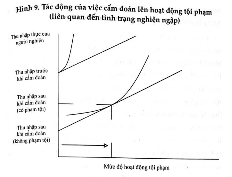 Với mức thu nhập ban đầu, cá nhân ít hoặc không tham gia vào các hoạt động bất hợp pháp. Nhưng khi giả heroine tăng thì thu nhập thực tế sẽ giảm. Ở mức thu nhập thấp hơn này, tỉ lệ của thu nhập bất hợp pháp sẽ gia tăng. Các cá nhân sẽ tham gia vào nhiều hoạt động phạm tội hơn. Do đó, cấm đoán sẽ làm cho những người chưa phạm tội tham gia vào những hoạt động bã hợp pháp như buôn bán ma túy hoặc trộm cướp.