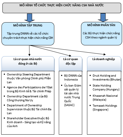 Tại Trung Quốc, Ủy ban Giám sát và quản lý tài sản nhà nước thuộc Quốc vụ viện (Chính phủ) được thành lập để lãnh đạo và thúc đẩy cải cách, tái cơ cấu DNNN; giám sát việc bảo toàn và phát triển vốn nhà nước tại các doanh nghiệp; tăng cường quản lý tài sản nhà nước và thúc đẩy việc điều chỉnh chiến lược của các khu vực kinh tế. Đồng thời, mô phỏng theo mô hình công ty đầu tư vốn nhà nước Temasek Holdings của Singapore (được điều hành bởi các chuyên gia kinh tế), Trung Quốc thành lập một quỹ đầu tư 200 tỷ USD thuộc Tổng công ty đầu tư Trung Quốc (China Investment Corporation). Nhiều nước phát triển và đang phát triển cũng thành lập một số công ty như vậy nhằm bảo toàn và tăng giá trị của các nhóm tài sản công nào đó, ví dụ quản lý tài nguyên không tái tạo (Na Uy, UAE), quản lý tài sản tài chính (Singapore, Trung Quốc). Đặc điểm của các công ty này là: Được thành lập theo luật, điều lệ hay hợp đồng; có chức năng quản lý các tài sản công, mà những tài sản này không sử dụng cho lợi ích cá nhân cụ thể nào; có quyền tự chủ nhất định trước các can thiệp chính trị; tự chủ quản lý ngân sách trong khuôn khổ quy định của Chính phủ; có nguồn thu bao gồm các khoản thu riêng, các khoản tài trợ đặc thù và ngân sách nhà nước; chịu trách nhiệm trước công luận theo quy định của pháp luật và thông lệ.